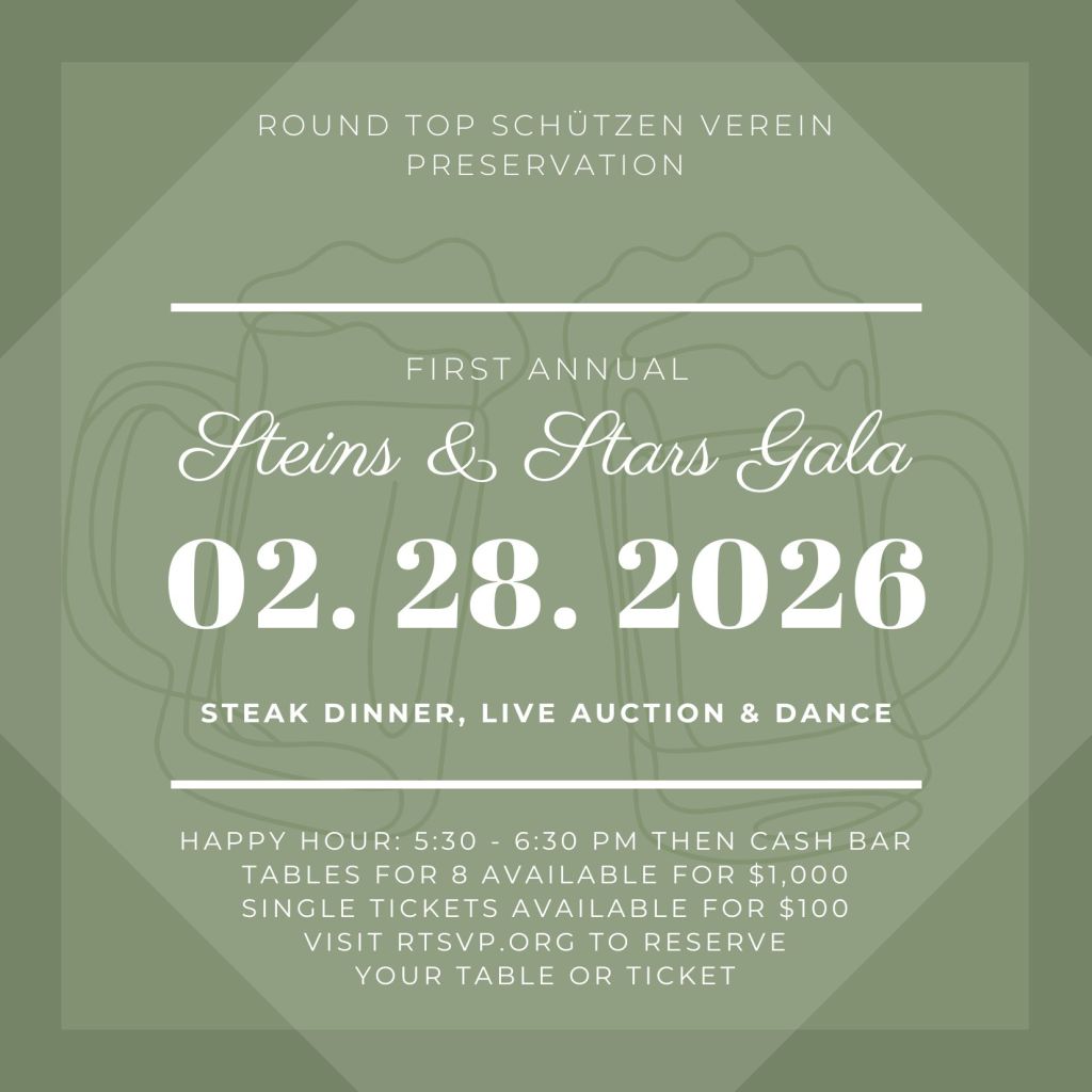 Join us February 28, 2026 for the exciting inaugural gala benefiting Round Top Schützen Verein Preservation, the newly established 501 (c) (3) whose mission is preserving and celebrating the rich history of Round Top, Texas, by restoring and maintaining the historic Round Top Rifle Hall.